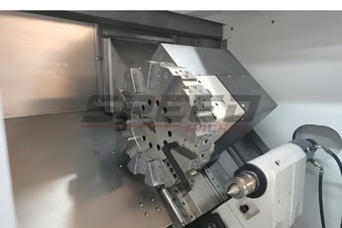 O torno de barramento inclinado adota o método de torre, que tem velocidade de troca rápida de ferramentas e alta precisão de posicionamento.